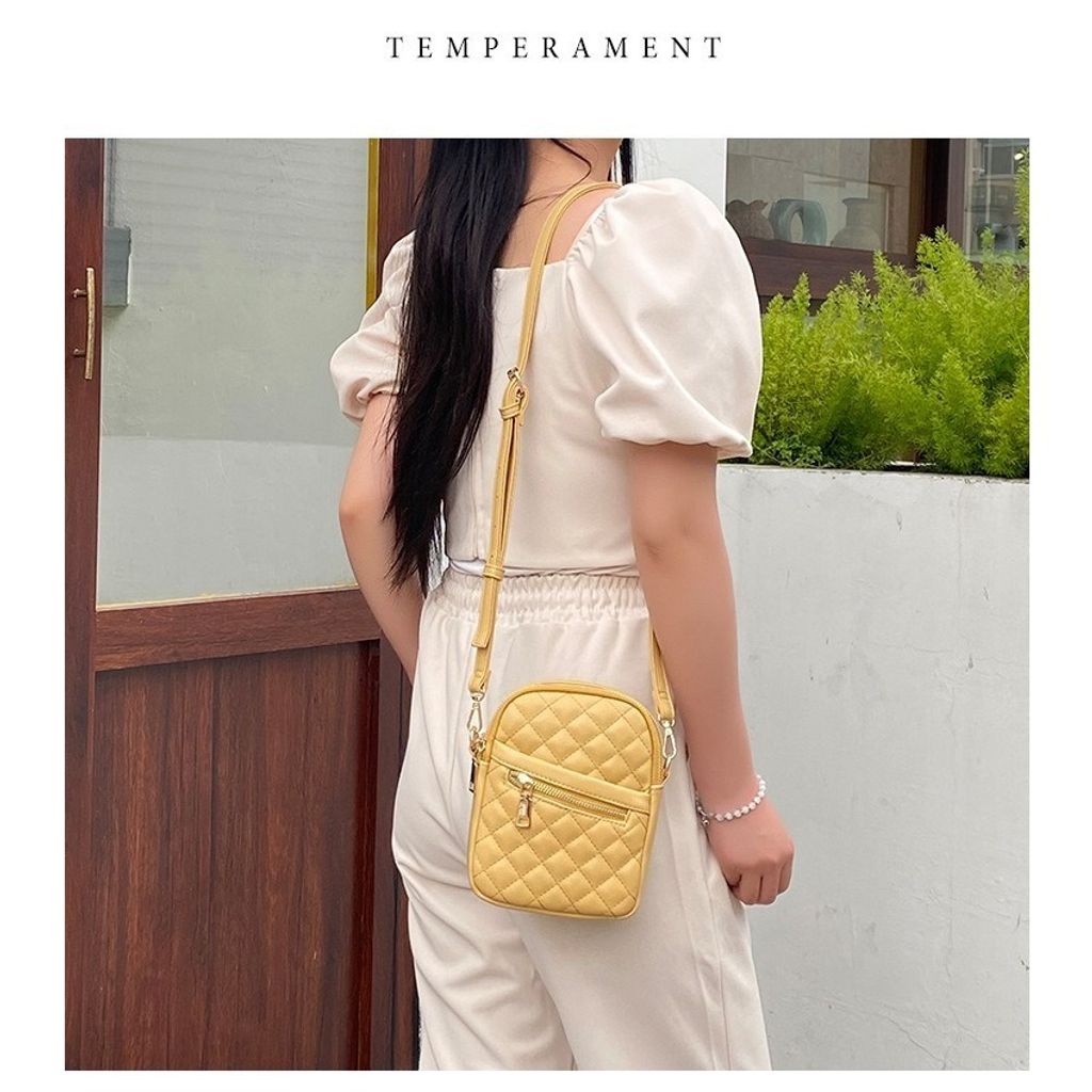 【愛美寶包】Kai Siqi 菱格單肩斜挎手機包(黃)