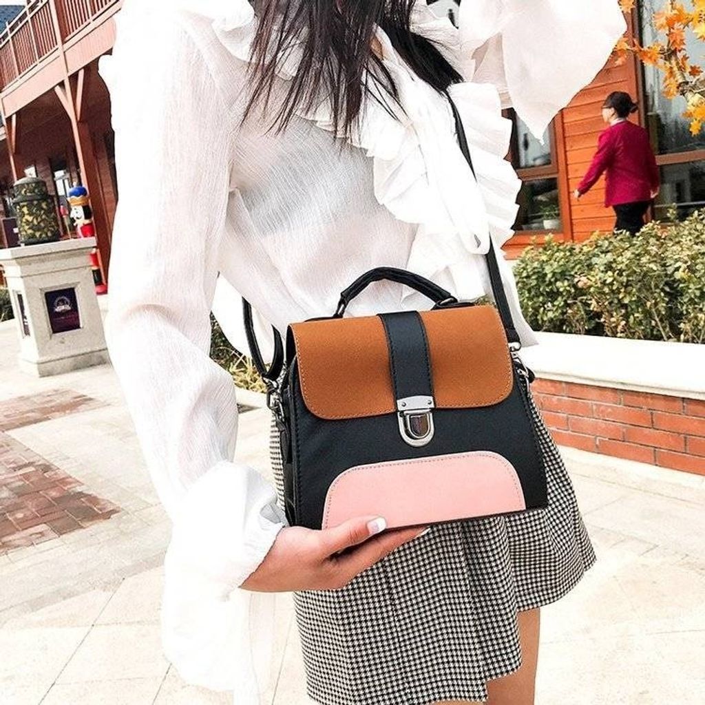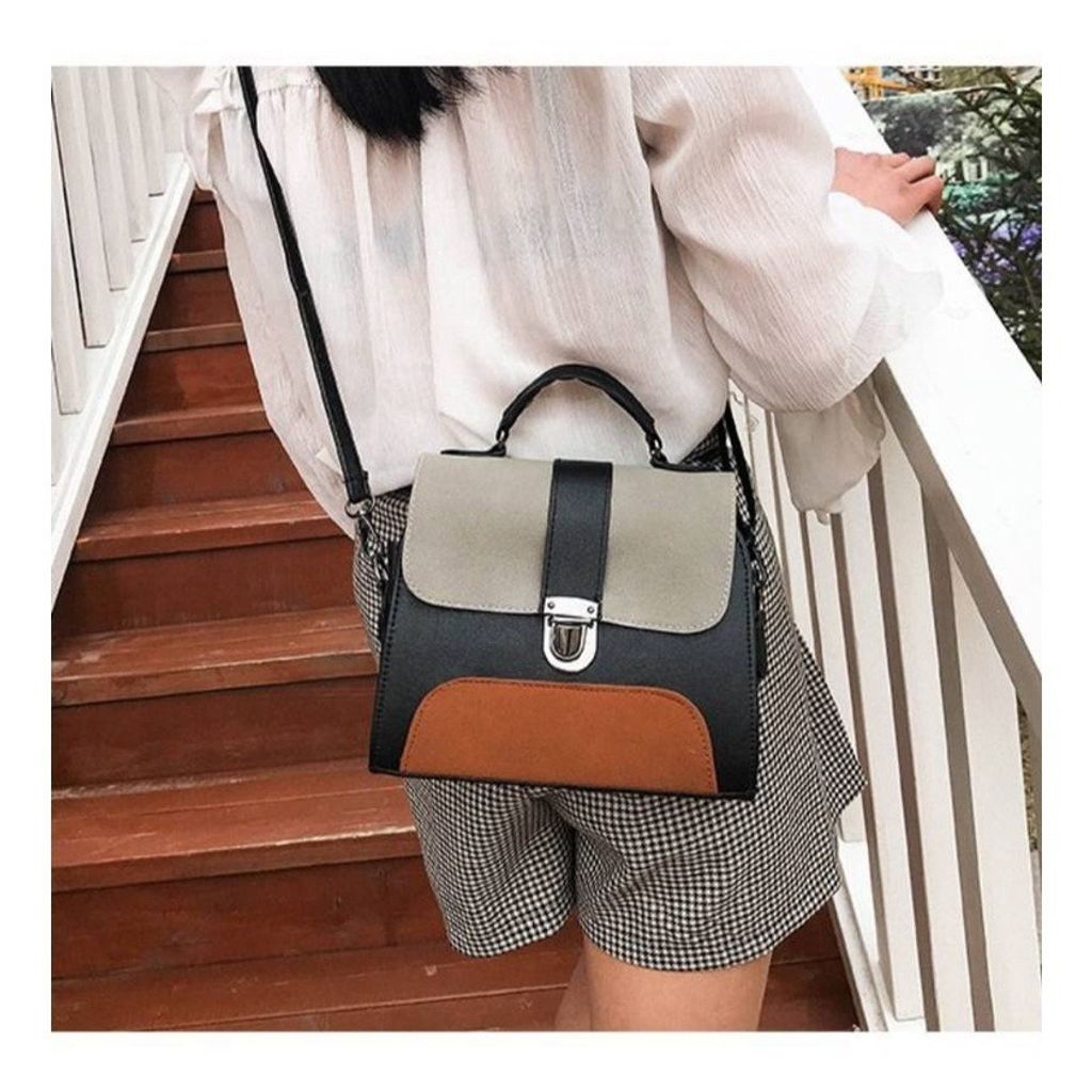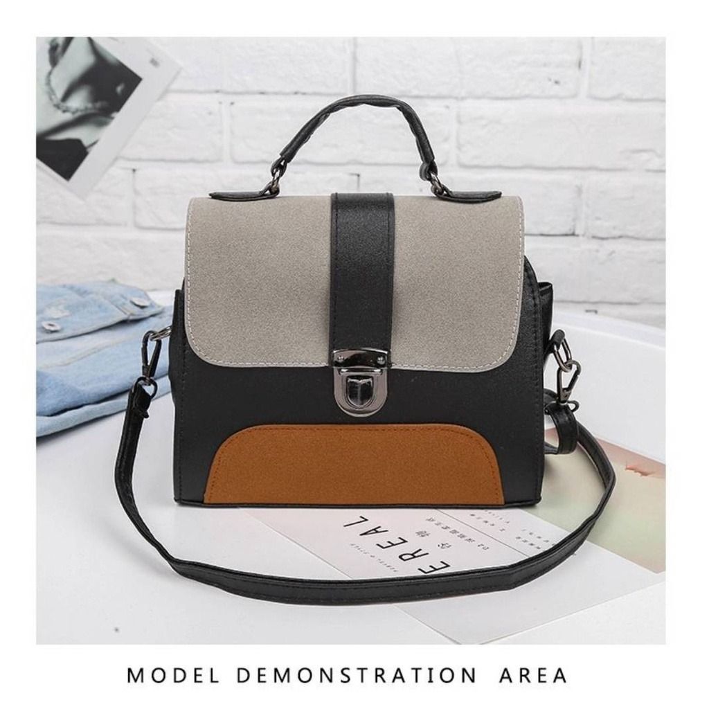 【愛美寶包】日系混色方型手提單肩斜挎包