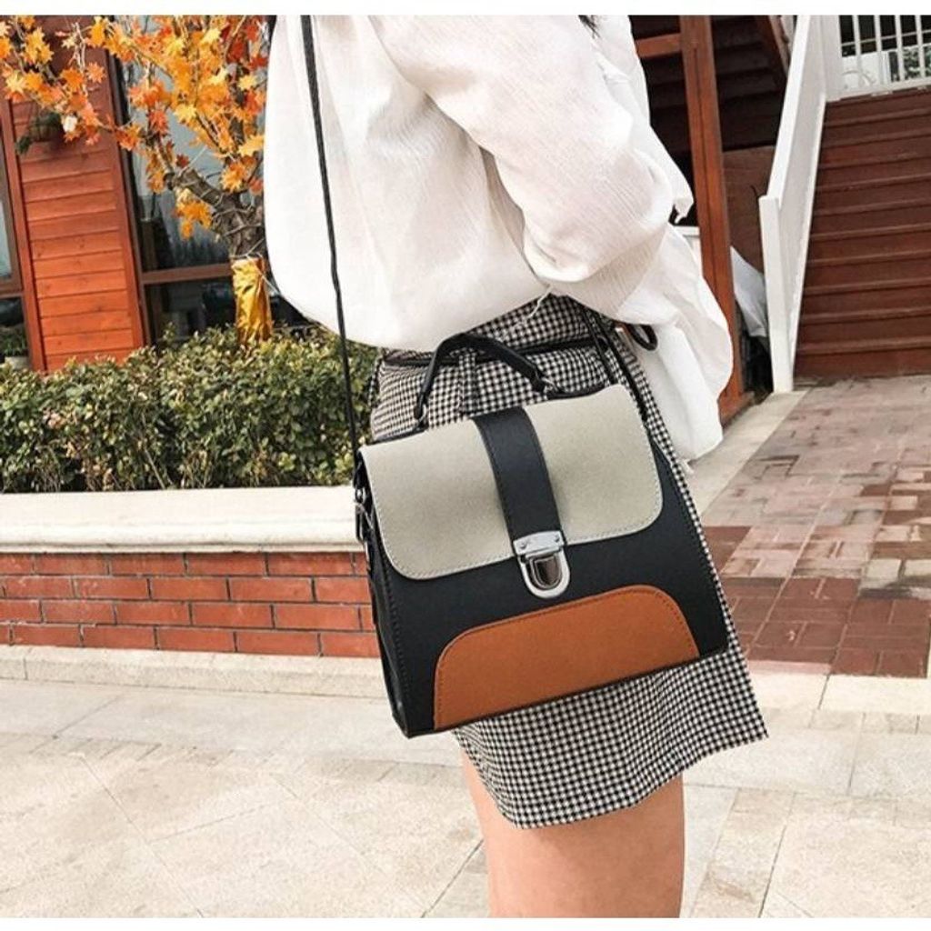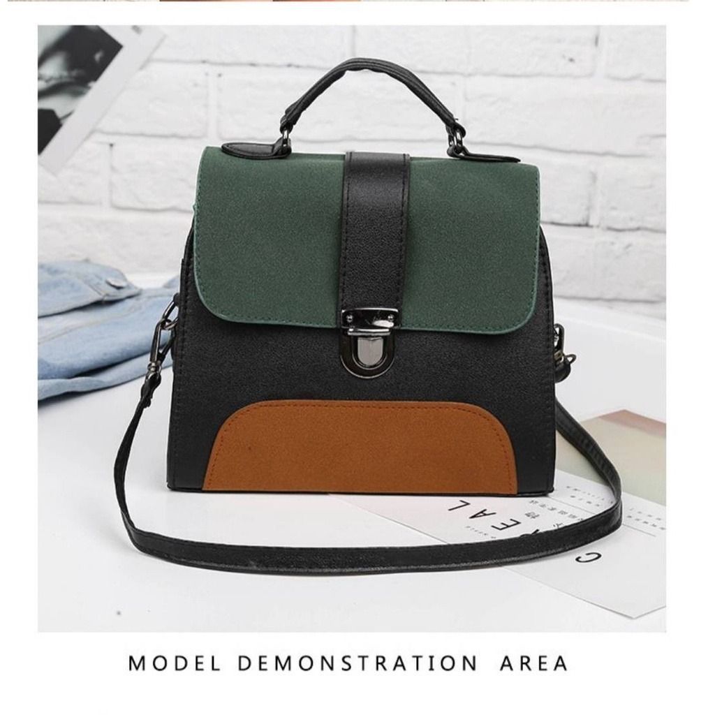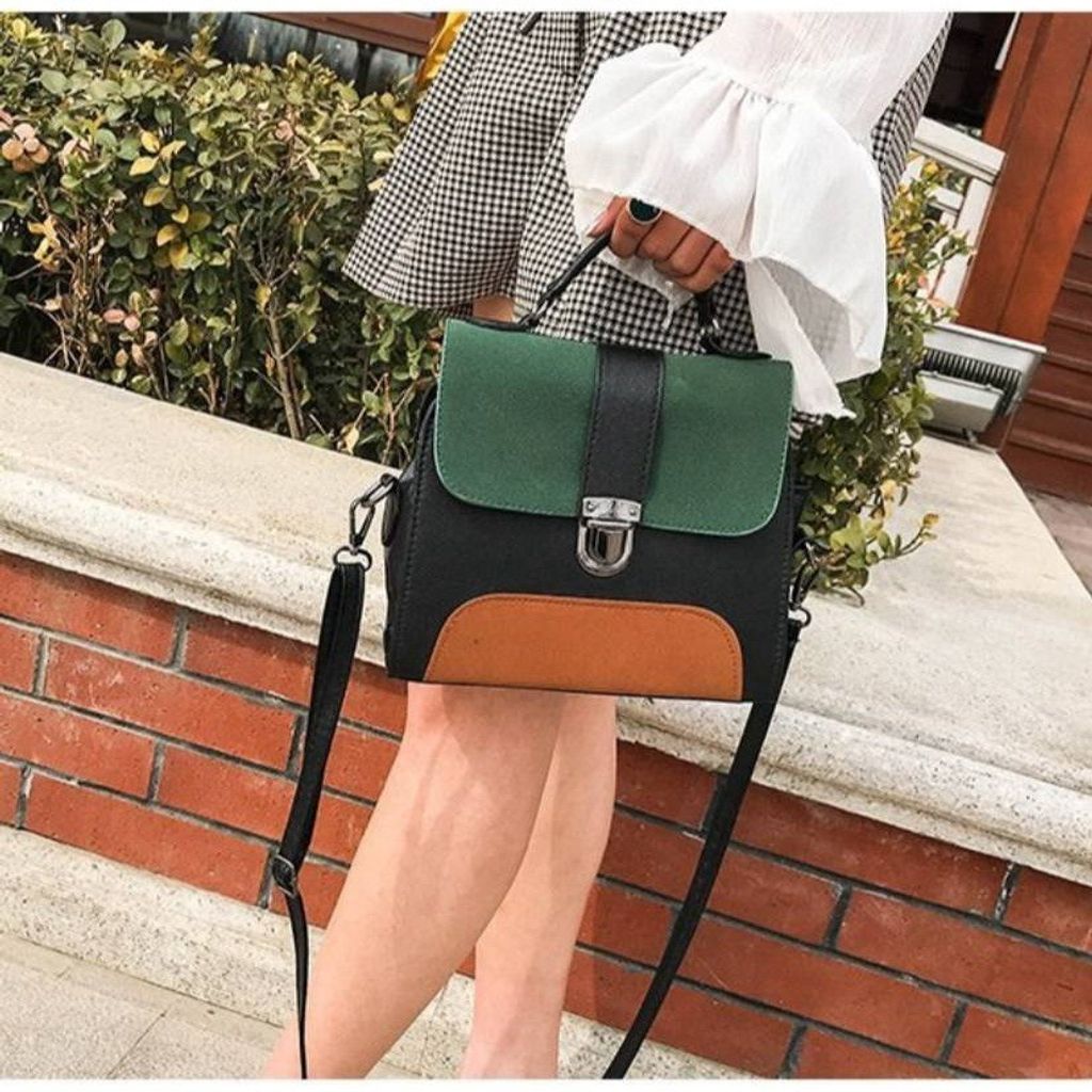 【愛美寶包】日系混色方型手提單肩斜挎包