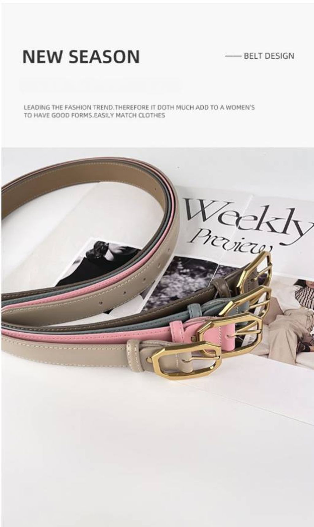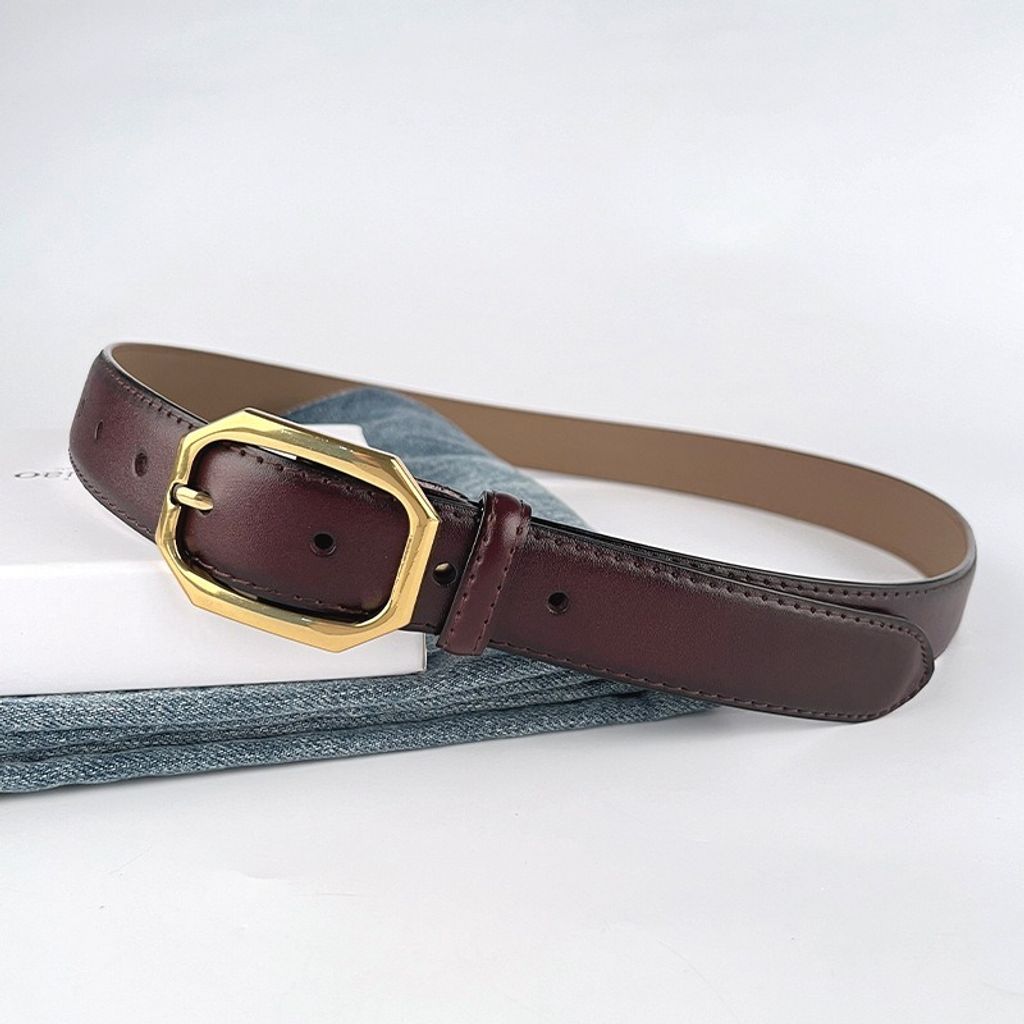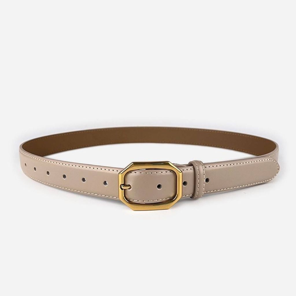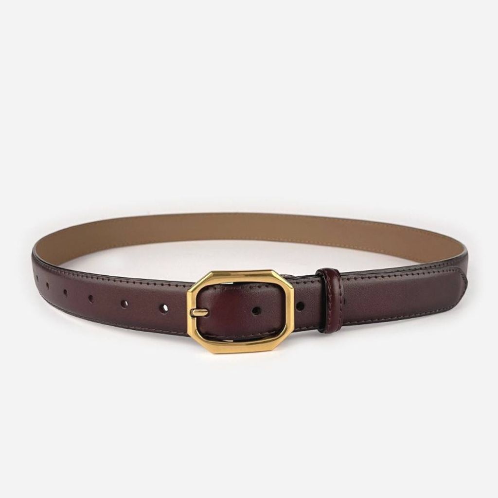 真皮四邊型扣環休閒皮帶(品牌盒裝)